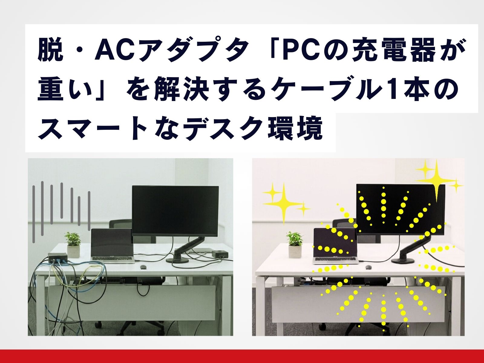 フリーアドレスやテレワークが当たり前になった今、PCと一緒にACアダプタを持ち歩くのが苦痛...